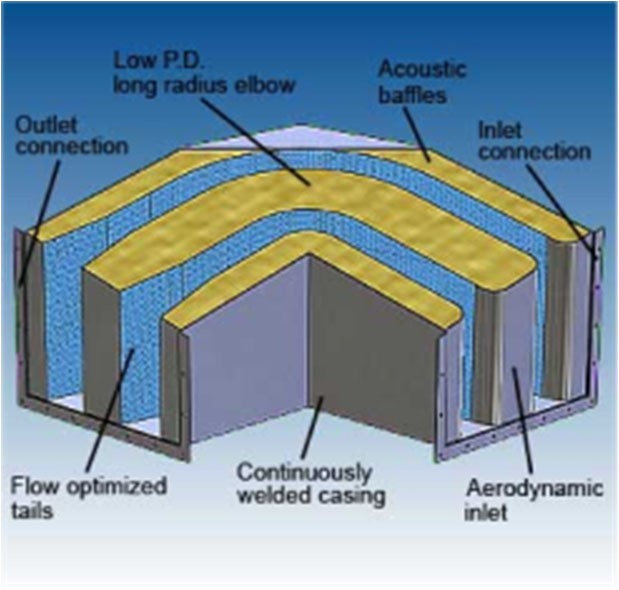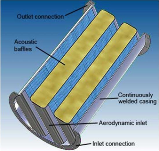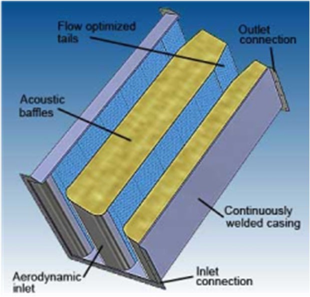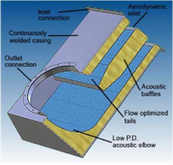 Internal configurations are optimized to allow airflow to pass efficiently while achieving targeted acoustic attenuation.